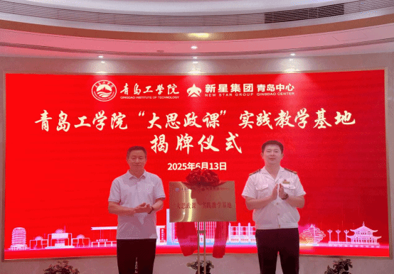 為全面落實教育部等十部門印發(fā)的《全面推進(jìn)“大思政課”建設(shè)的工作方案》,進(jìn)一步加強(qiáng)和規(guī)范實踐教學(xué),推動思政小課堂與社會大課堂相結(jié)合,2025年6月13日青島工學(xué)院馬克思主義學(xué)院與新星集團(tuán)青島中心舉行“大思政課 ”實踐教學(xué)基地簽約揭牌儀式。