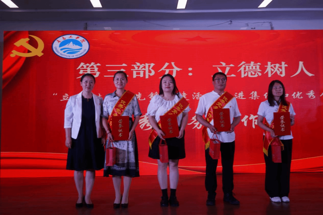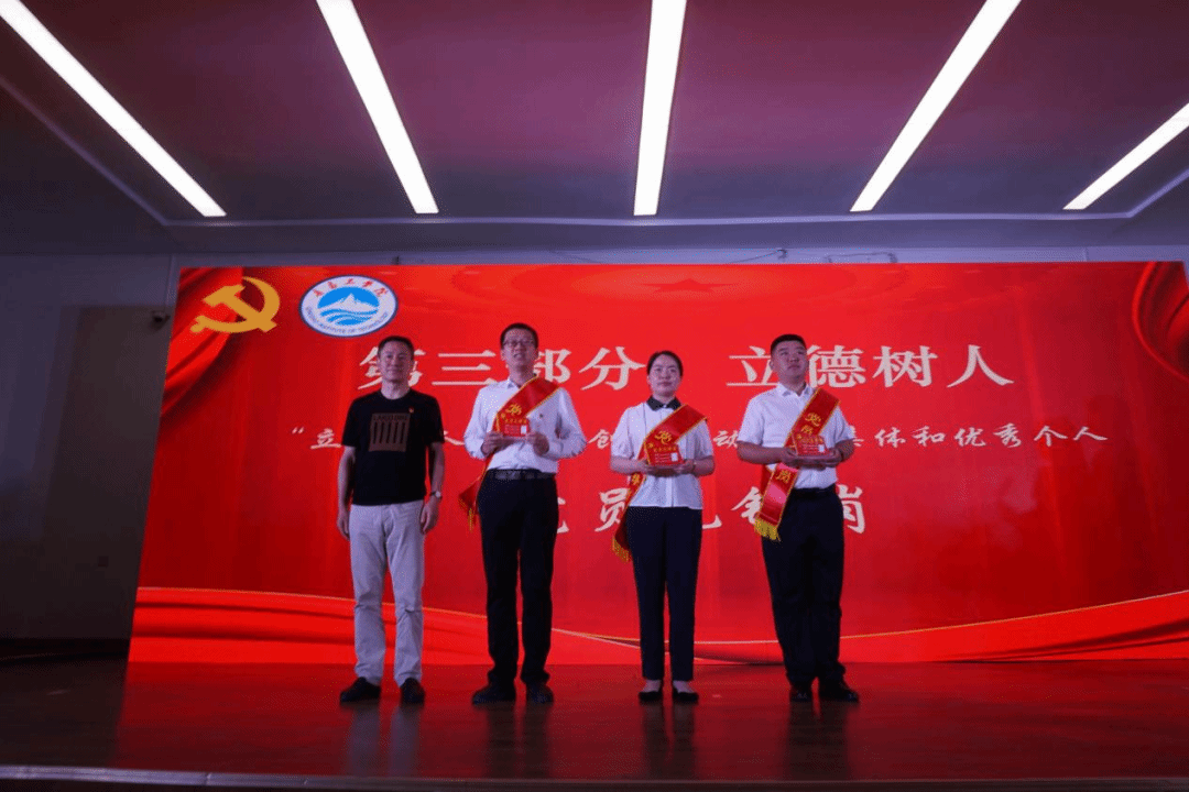 黨委副書記、紀委書記王瑩宣讀了《關于表彰2024年“立德樹人”先鋒創(chuàng)建活動先進集體和優(yōu)秀個人的決定》《關于設立和創(chuàng)建2024年度“黨員先鋒崗”的決定》《關于表彰2024年學生優(yōu)秀共產(chǎn)黨員的決定》《關于公布以“高質(zhì)量發(fā)展強擔當”為主題深入開展黨員教育系列活動獲獎作品的通知》《關于表彰2023年度新聞宣傳工作先進集體、優(yōu)秀通訊員和優(yōu)秀學生信息員的通知》。參會領導為獲獎集體及先進個人頒獎。