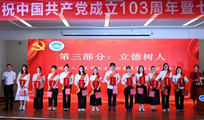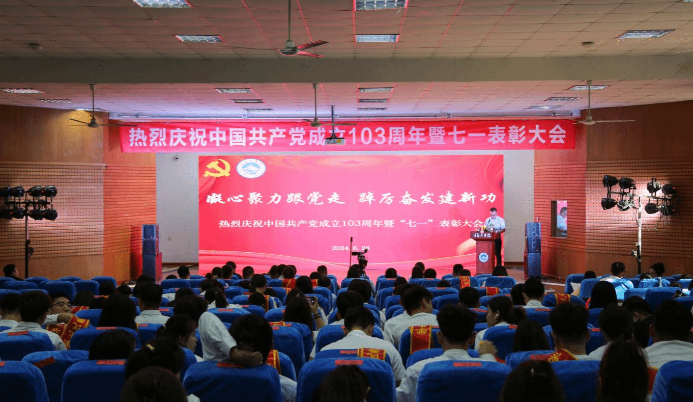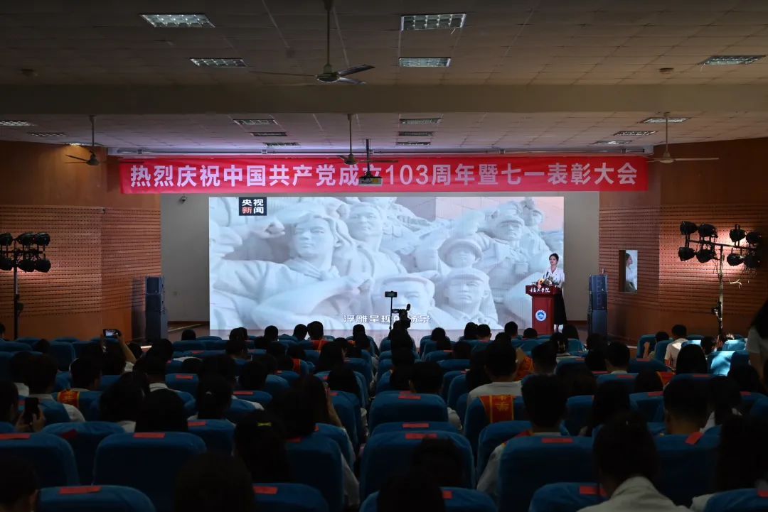 為表彰先進、樹立標桿,號召廣大黨員同志和教職員工見賢思齊、追求進步,永葆黨的先進性和純潔性,6月26日下午,我校在2105學術報告廳隆重舉行慶祝中國共產(chǎn)黨成立103周年暨“七一”表彰大會,旨在全面回顧中國共產(chǎn)黨建黨以來走過的光輝歷程,對在工作中表現(xiàn)突出的先進典型予以表彰,激勵全校黨員銘記光輝歷史、牢記初心使命,再接再厲、團結(jié)奮斗,朝著建設高水平應用型本科大學闊步前進。
