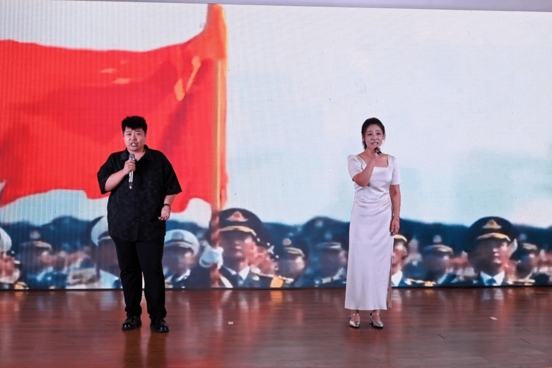 團委文藝社團為大家表演了《鮮艷的黨旗》《黃河頌》等精彩節(jié)目?;A教育學院張智棠博士和趙梓屹老師演唱《我和我的祖國》,悠揚的歌聲唱出了我校師生對偉大祖國的崇高敬意,更是將大會氣氛推至高潮。