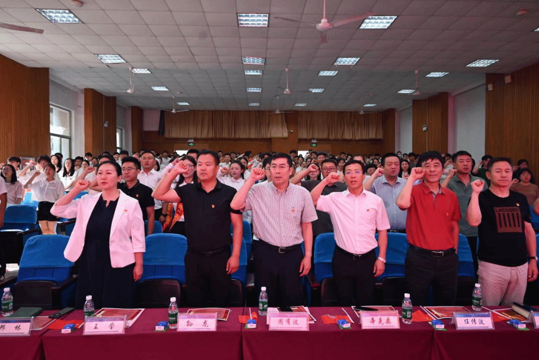 “我志愿加入中國共產(chǎn)黨……為共產(chǎn)主義奮斗終身,隨時準備為黨和人民犧牲一切……”鮮紅的黨旗,高舉的右拳,錚錚的誓言,黨員們重溫誓詞,報告廳內(nèi)回響的入黨誓言,彰顯出黨員們牢記政治責任和歷史使命,為黨分憂、為國盡責、為民奉獻的決心。