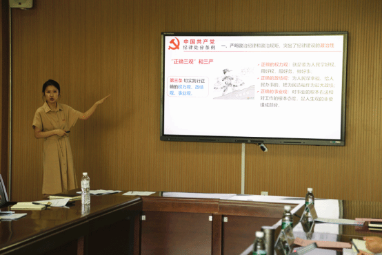 隨后,馬克思主義學(xué)院教師尹萌作專題輔導(dǎo)報(bào)告,她從紀(jì)律建設(shè)的政治性、時(shí)代性、針對(duì)性、銜接性四個(gè)維度闡釋了《條例》 修訂的顯著特點(diǎn)和重大意義。