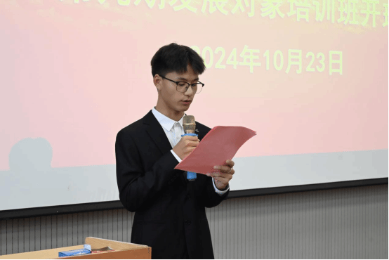 設(shè)計(jì)藝術(shù)與傳媒學(xué)院周桂陽(yáng)同學(xué)代表入黨積極分子作了表態(tài)發(fā)言。他表示,感謝學(xué)校提供了學(xué)習(xí)黨的知識(shí)的良好平臺(tái),必將珍惜此次難得的學(xué)習(xí)機(jī)會(huì),端正入黨動(dòng)機(jī),積極完成組織交給的任務(wù),爭(zhēng)取早日成為新時(shí)期合格的共產(chǎn)黨員。