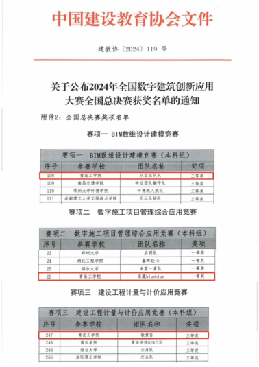 10月29日,全國數(shù)字建筑創(chuàng)新應(yīng)用大賽總決賽獲獎(jiǎng)名單公布。我院學(xué)子在此次大賽中表現(xiàn)卓越,榮獲總決賽一等獎(jiǎng)1項(xiàng)、三等獎(jiǎng)2項(xiàng),創(chuàng)歷史最好成績。