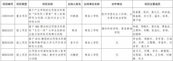 近日,山東省教育廳正式公布2024年山東省本科教學(xué)改革研究項(xiàng)目立項(xiàng)名單,青島工學(xué)院喜訊傳來(lái),學(xué)校提交的4個(gè)項(xiàng)目全部成功獲批立項(xiàng)。這一成果彰顯了我校在本科教學(xué)改革領(lǐng)域的積極探索與顯著成效。