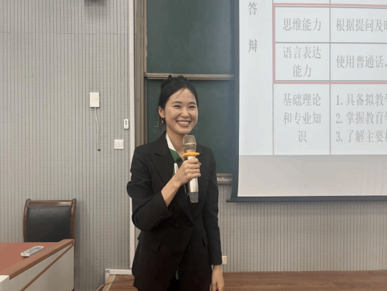 培訓(xùn)會(huì)上,宋文芳圍繞面試流程、試講要求和答辯要求三大方面進(jìn)行了詳細(xì)講解。對從申請到成績公布的各個(gè)關(guān)鍵時(shí)間節(jié)點(diǎn)和任務(wù)進(jìn)行梳理,讓老師們清晰了解面試的每一個(gè)步驟。重點(diǎn)闡述了說課、試講和反思的具體規(guī)范及重要性,特別強(qiáng)調(diào)在教學(xué)設(shè)計(jì)中要體現(xiàn)新理念、新教法,融入課程思政,做到有效互動(dòng)。在答辯環(huán)節(jié),對教師們的綜合素質(zhì)提出要求,提醒老師們注意儀表儀態(tài)、語言表達(dá)和專業(yè)知識(shí)的展現(xiàn)。宋老師的講解深入淺出,結(jié)合實(shí)際案例,讓老師們對面試有了更清晰的認(rèn)識(shí)和更充分的準(zhǔn)備。