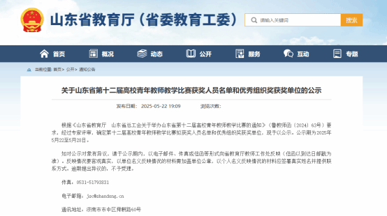 近日,山東省教育廳發(fā)布了《關于山東省第十二屆高校青年教師教學比賽獲獎人員名單和優(yōu)秀組織獎獲獎單位的公示》的通知,我校獲得二等獎1項,三等獎1項。馬克思主義學院馬小晴老師獲得二等獎,基礎教育學院張聰聰老師獲得三等獎。