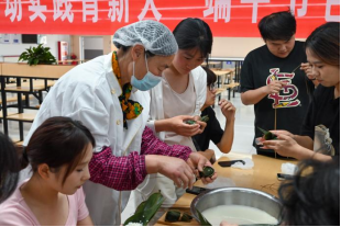 為深入貫徹習(xí)近平總書記關(guān)于弘揚(yáng)中華優(yōu)秀傳統(tǒng)文化的重要指示精神,落實(shí)“五育并舉”育人理念,在端午節(jié)即將來臨之際,5月30日下午,學(xué)校在生活服務(wù)中心一樓成功舉辦“粽葉飄香傳文化·勞動(dòng)實(shí)踐育新人”端午節(jié)包粽子實(shí)踐活動(dòng)。校長劉連新、副校長王瑩出席活動(dòng),與200余名師生代表共同體驗(yàn)傳統(tǒng)民俗魅力。