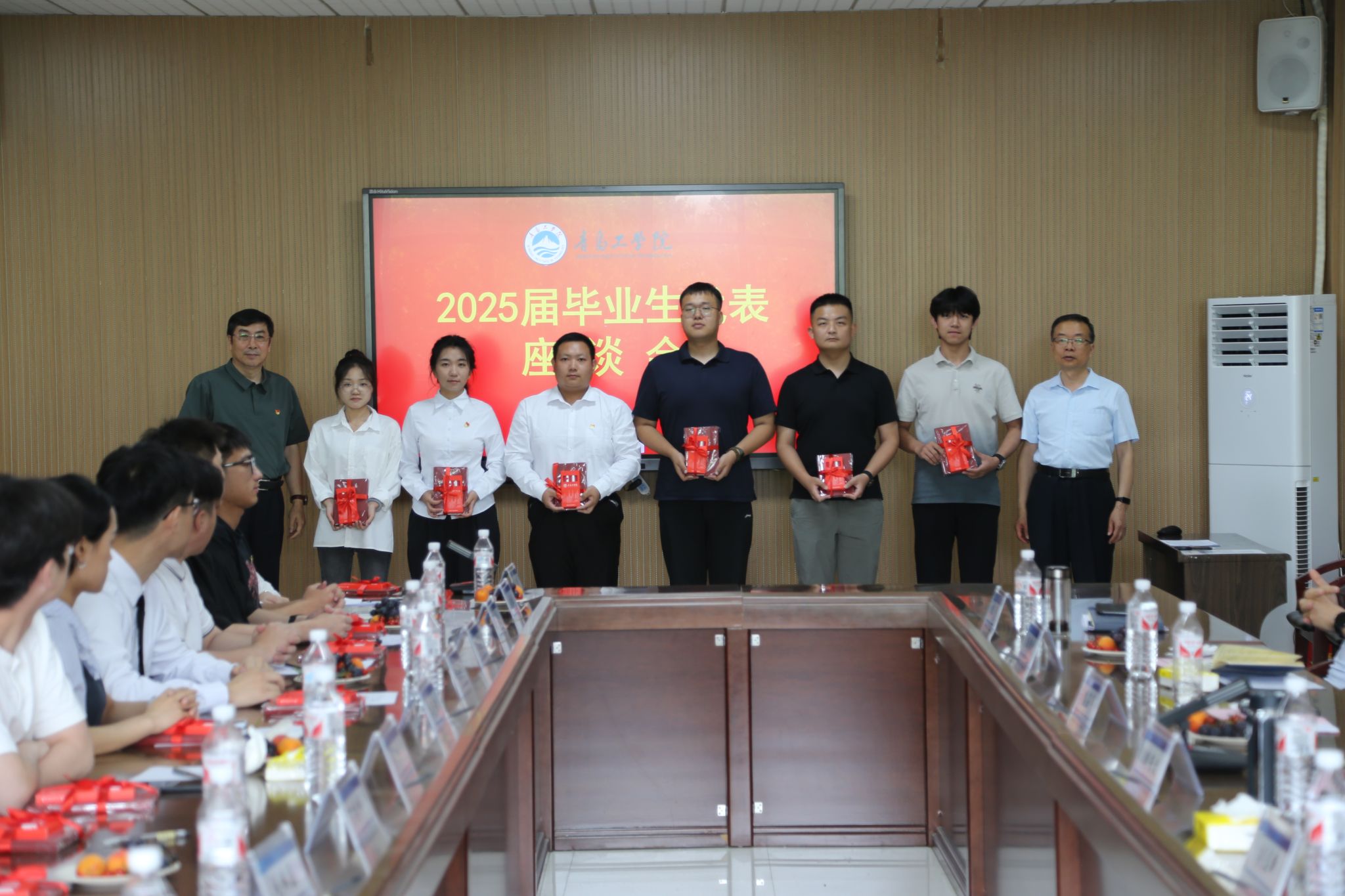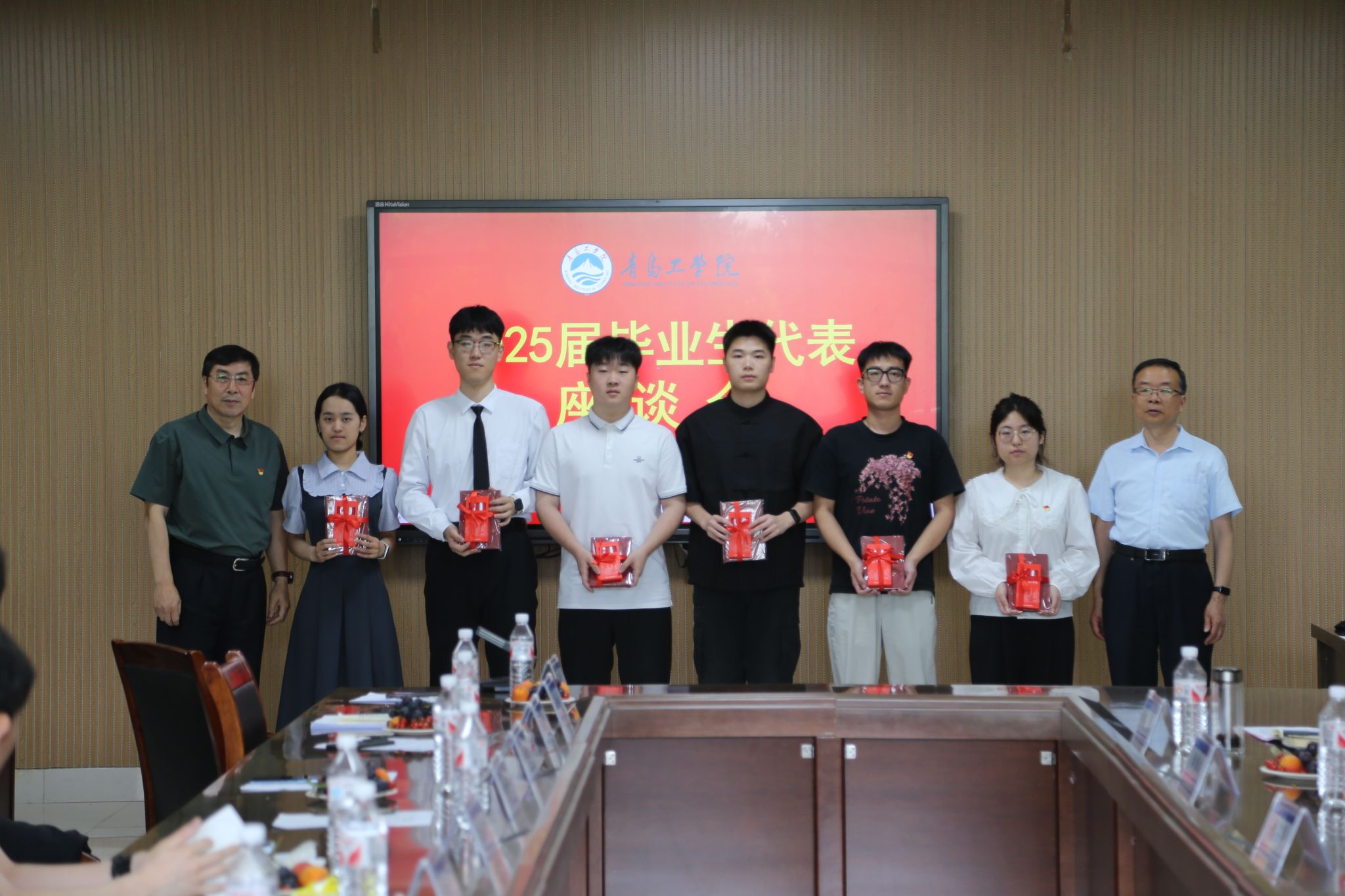 座談會后學(xué)校領(lǐng)導(dǎo)為畢業(yè)生代表贈送紀(jì)念品,祝愿2025屆畢業(yè)生志存高遠(yuǎn),腳踏實地,在青春的新賽道上放飛人生夢想,在未來的道路上奮勇前行,書寫更加精彩的人生篇章!
