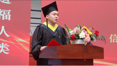 2021級信息工程學院計算機科學與技術專業(yè)劉志同學作為畢業(yè)生代表發(fā)言,他表示,作為青島工學院的畢業(yè)生,感謝學校提供了完善自我、拓展眼界的良機與平臺,在傳授知識的同時,更給予了成長的空間和勇氣。站在人生的新起點,他將不負囑托,牢記“胸懷天下、造福人類”的校訓,繼承和發(fā)揚五四精神,爭做有理想、敢擔當、能吃苦、肯奮斗的新時代好青年。