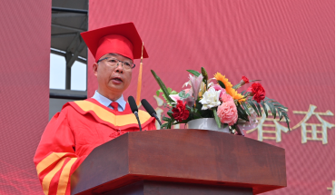 校長、校學位評定委員會主席劉連新教授致辭,他和畢業(yè)生們共同回首了這段意義非凡的求學歲月,并代表學校向全體畢業(yè)生致以熱烈的祝賀和美好的祝愿。他對畢業(yè)生提出了六點期望:一是永葆求知熱忱,以終身學習錨定人生坐標,在時代變革中尋求突破,努力成為推動社會進步的中堅力量;二是勇立創(chuàng)新潮頭,以突破精神激活發(fā)展動能,將創(chuàng)新的火種融入行動之中;三是厚植家國情懷,以擔當脊梁回應時代召喚,要將個人命運與國家安危緊密相連、休戚與共,將理想融入強國建設的時代大潮;四是錘煉吃苦品格,以堅韌意志鍛造人生韌度,積極主動地鉆研探索、攻克艱難險阻,于實踐之中提煉經(jīng)驗、增強能力 ;五是篤行實干哲學,以奮斗之姿書寫青春華章,要秉持實事求是精神,勇挑社會責任重擔,積極投身于建設事業(yè)之中;六是涵養(yǎng)人格境界,以正直善良筑牢立身之本,要從身邊小事做起,堅守道德底線,用誠信立身,以奮斗筑夢,做“懂感恩、講誠信、敢擔當”的時代新青年,在服務國家發(fā)展中實現(xiàn)自我價值,奮力書寫為中國式現(xiàn)代化挺膺擔當?shù)那啻菏吩姟?/p>