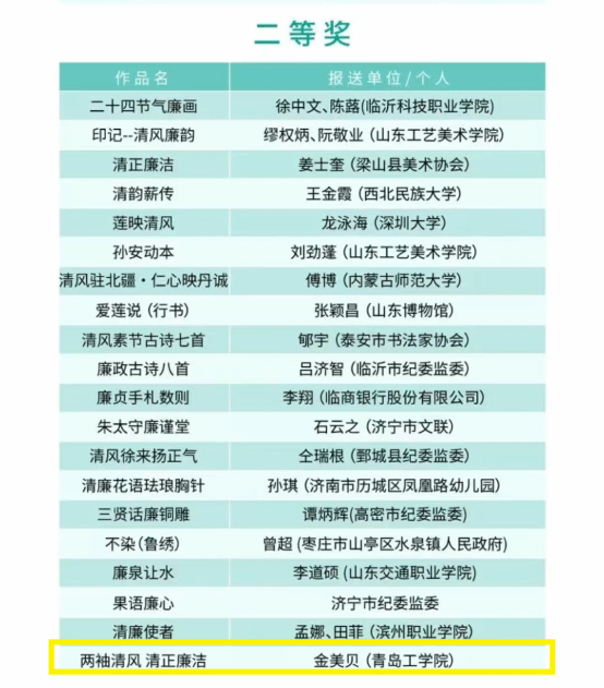 這一佳績(jī)的取得,離不開青島工學(xué)院黨委教師工作部李金艷、發(fā)展規(guī)劃處周崛夏兩位指導(dǎo)老師的精心指導(dǎo),更是學(xué)校長(zhǎng)期重視廉潔文化建設(shè)的結(jié)晶。近年來,青島工學(xué)院堅(jiān)持以習(xí)近平文化思想為引領(lǐng),全面貫徹黨的二十大和二十屆二中、三中全會(huì)精神,積極推動(dòng)新時(shí)代廉潔文化建設(shè)走深走實(shí)。為營(yíng)造崇廉拒腐的校園風(fēng)尚,學(xué)校先后舉辦廉潔教育系列活動(dòng)、校園廉潔文化作品創(chuàng)作大賽、“廉潔文化與黃河文化”專題展、新時(shí)代廉潔文化理論研究征文等系列活動(dòng),將廉潔教育融入人才培養(yǎng)全過程,在全校范圍內(nèi)掀起了鍥而不舍落實(shí)中央八項(xiàng)規(guī)定精神,弘揚(yáng)清風(fēng)正氣校園廉潔文化的濃厚氛圍。