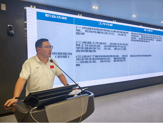 經(jīng)濟(jì)管理學(xué)院黨總支副書記朱江濤則聚焦《高等學(xué)校輔導(dǎo)員職業(yè)能力標(biāo)準(zhǔn)(暫行)》和《普通高等學(xué)校學(xué)生管理規(guī)定》的修訂要點,進(jìn)行了細(xì)致講解。他詳細(xì)介紹了文件中對輔導(dǎo)員專業(yè)知識、職業(yè)技能及職業(yè)素養(yǎng)的提升要求,涵蓋思想政治教育、學(xué)生事務(wù)管理、心理健康教育等關(guān)鍵領(lǐng)域,并解讀了學(xué)籍管理、日常行為規(guī)范等調(diào)整內(nèi)容。他強(qiáng)調(diào):“輔導(dǎo)員在執(zhí)行過程中必須確保管理工作規(guī)范化、制度化,以學(xué)生為中心,實現(xiàn)教育公平與高效?!?/p>