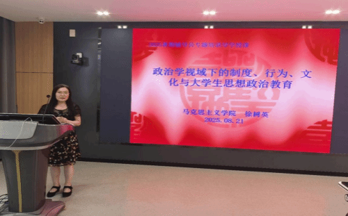 徐樹英教授以《政治學(xué)視域下的制度、行為、文化與大學(xué)生思想政治教育》為主題,聚焦“政治制度的基本理論”“政治行為與社會(huì)主義中國(guó)的政治參與”“政治文化與中國(guó)特色社會(huì)主義政治文化”“大學(xué)生思想政治教育工作的政治學(xué)維度”四個(gè)方面,引導(dǎo)輔導(dǎo)員從政治參與和政治文化等維度分析學(xué)生思想動(dòng)態(tài),并通過校園民主實(shí)踐進(jìn)一步激活思政工作的實(shí)效性和創(chuàng)新性。