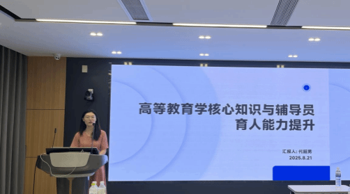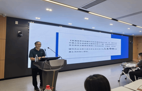 代韶男老師以《高等教育學(xué)核心知識(shí)與輔導(dǎo)員育人能力提升》為主題,結(jié)合政策文件詳細(xì)解讀了教育發(fā)展的最新熱點(diǎn)內(nèi)容,深刻剖析了高等教育發(fā)展的規(guī)律,并從教育學(xué)的角度針對(duì)高校輔導(dǎo)員如何將理論轉(zhuǎn)化為實(shí)踐提供了行動(dòng)建議。她指出,輔導(dǎo)員應(yīng)成為學(xué)生成長(zhǎng)的“鏡像”,以學(xué)術(shù)引領(lǐng)學(xué)業(yè)、以關(guān)懷守護(hù)成長(zhǎng),真正體現(xiàn)教育“喚醒”本質(zhì)。