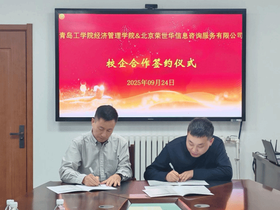 2025年9月24日,青島工學(xué)院經(jīng)濟(jì)管理學(xué)院與北京榮世華信息咨詢服務(wù)有限公司校企合作簽約儀式在行政樓會議室順利舉行。學(xué)校投資方總裁、副校長李偉及招生就業(yè)處與經(jīng)濟(jì)管理學(xué)院負(fù)責(zé)人、北京榮世華信息咨詢服務(wù)有限公司經(jīng)理席華潮、北京汲知教育科技有限公司總經(jīng)理張靜等共同出席本次簽約儀式。