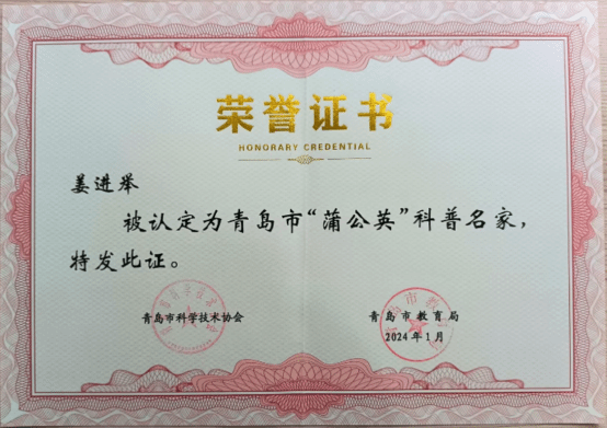 近日,青島市科協(xié)召開2024年學會、企事業(yè)科協(xié)工作會。會議對2023年度學會工作先進單位、企事業(yè)科協(xié)工作先進單位、學會工作先進個人、企事業(yè)科協(xié)工作先進個人以及“蒲公英”科普名家進行了表揚,并為新建院士工作站授牌。青島工學院榮獲“2023年度企事業(yè)科協(xié)工作先進單位”稱號,科研處處長周崛夏被授予 “2023年度企事業(yè)科協(xié)工作先進個人”稱號,食品工程學院姜進舉教授被授予“青島市‘蒲公英’科普名家”稱號。