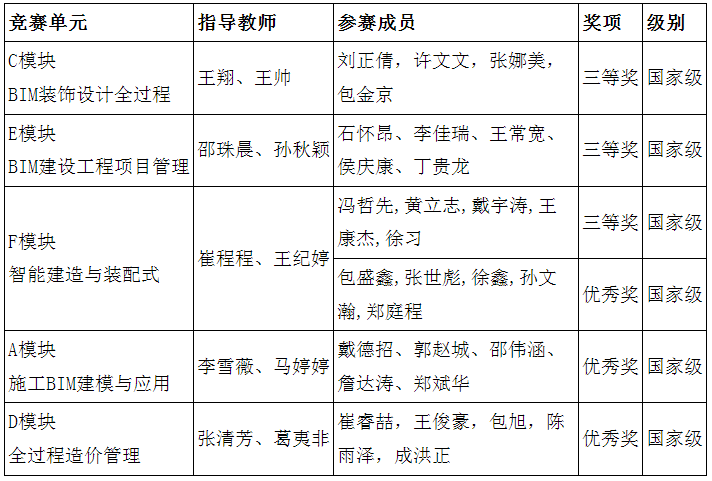 近日,第十屆全國高校BIM畢業(yè)設(shè)計(jì)創(chuàng)新大賽獲獎(jiǎng)名單公布,建筑工程學(xué)院實(shí)現(xiàn)賽事多模塊獲獎(jiǎng)突破,由王翔、王帥老師指導(dǎo)的C模塊BIM裝飾設(shè)計(jì)全過程應(yīng)用;由邵珠晨、孫秋穎老師指導(dǎo)的E模塊BIM建設(shè)工程項(xiàng)目管理應(yīng)用;由崔程程、王紀(jì)婷老師指導(dǎo)的F模塊智能建造與裝配式分獲國賽團(tuán)隊(duì)三等獎(jiǎng),D模塊全過程造價(jià)管理等獲優(yōu)秀獎(jiǎng)3項(xiàng)。