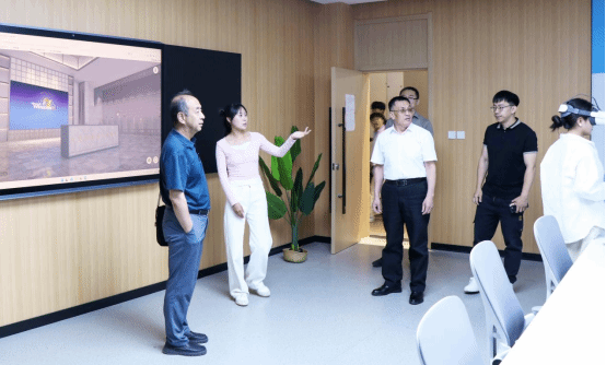 (覃川教授在李占軍副校長一行的陪同下參觀上合虛擬仿真數(shù)字文化創(chuàng)新實驗室)