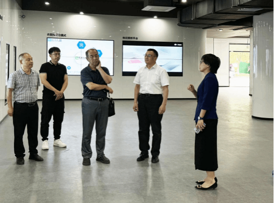 (覃川教授在李占軍副校長一行的陪同下參觀工業(yè)互聯(lián)網(wǎng)軟件應(yīng)用型人才培養(yǎng)基地)