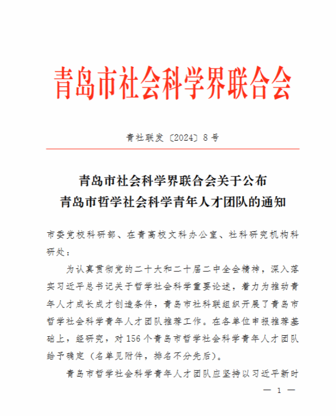 近日,青島市社會科學(xué)界聯(lián)合會公布了青島市哲學(xué)社會科學(xué)青年人才團(tuán)隊立項情況,我校申報的“上合地方經(jīng)貿(mào)示范區(qū)法律與產(chǎn)業(yè)發(fā)展政策研究創(chuàng)新團(tuán)隊”“青島紅色文化資源數(shù)字化傳承與創(chuàng)新團(tuán)隊”“中國傳統(tǒng)文化研究創(chuàng)新團(tuán)隊”獲批立項。