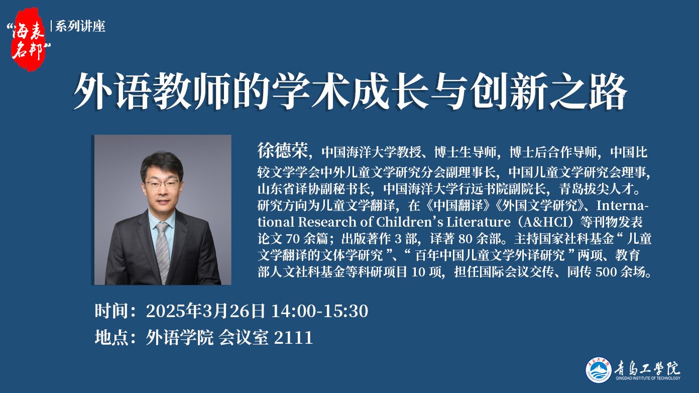 “海表名邦”系列講座:徐德榮《外語教師的學(xué)術(shù)成長與創(chuàng)新之路》