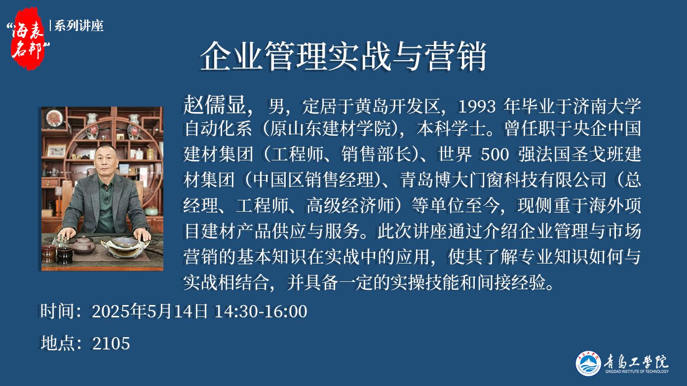 “海表名邦”系列講座:趙儒顯《企業(yè)管理實(shí)戰(zhàn)與營銷》