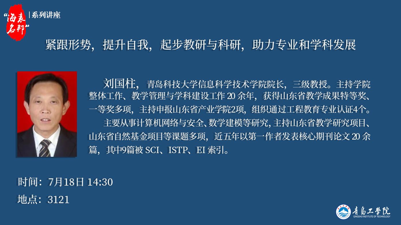 “海表名邦”系列講座:劉國柱《緊跟形勢,提升自我,起步教研與科研,助力專業(yè)和學(xué)科發(fā)展》