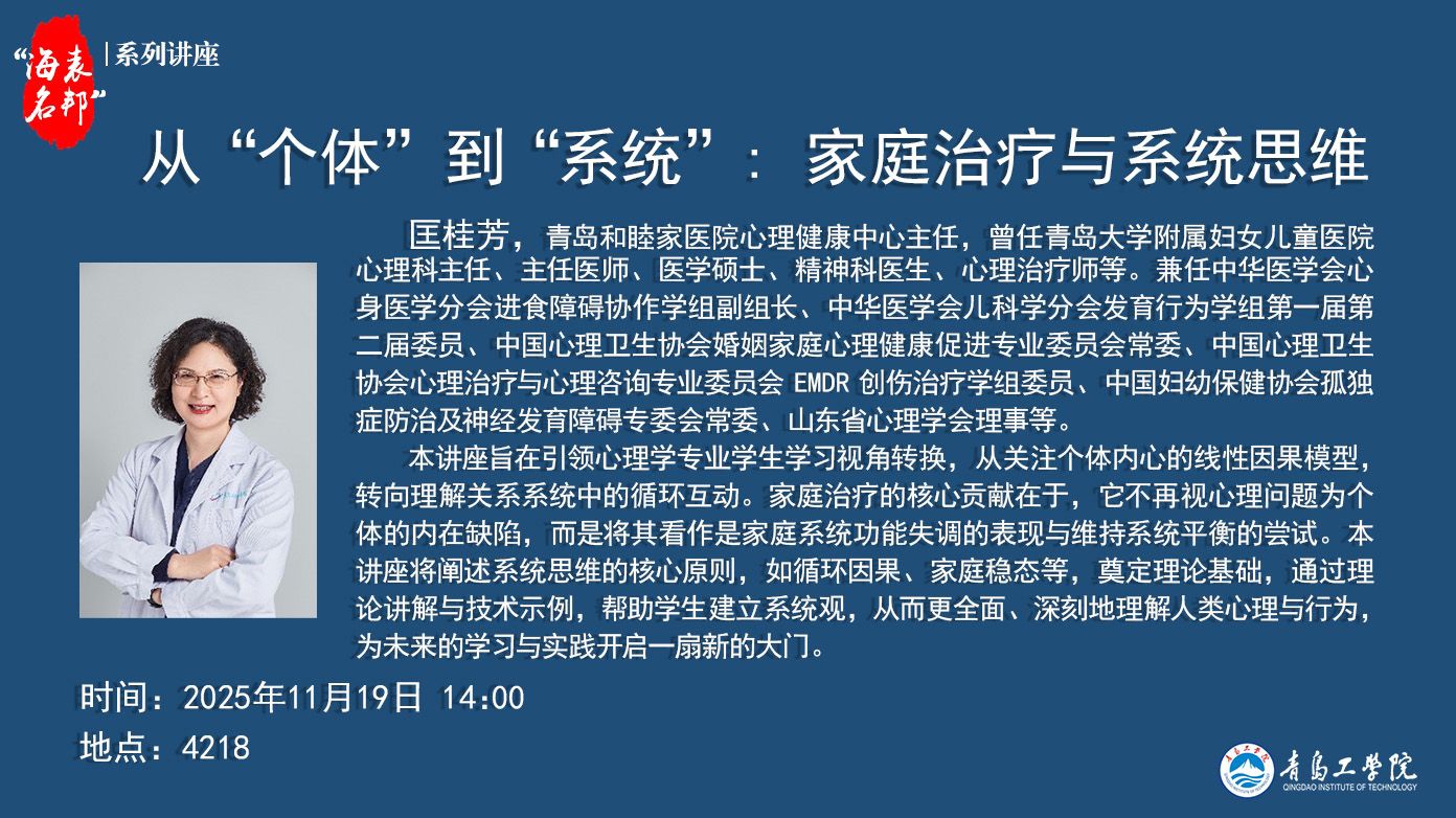 “海表名邦”系列講座:匡桂芳《從“個體”到“系統(tǒng)”:家庭治療與系統(tǒng)思維》