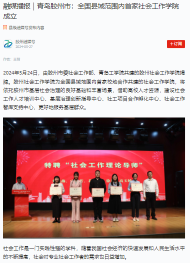 《學習強國》融媒播報|青島膠州市:全國縣域范圍內(nèi)首家社會工作學院成立