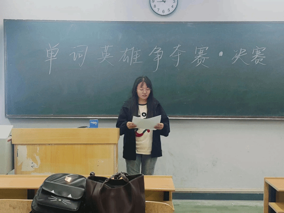 為了進一步營造濃厚的外語的學習氛圍,激發(fā)同學們對外語的學習興趣,增加學生詞匯量,挖掘學生學習外語的潛力,在學習中尋找樂趣,在玩耍中獲得智慧,5月13日20:20,外語學院于1209舉辦“單詞為勝,勇者為王”單詞英雄爭霸賽決賽,現(xiàn)場氣氛緊張而又輕松.