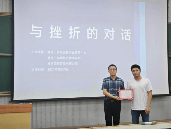 2024年10月9日,維斯國際貿(mào)易有限公司總經(jīng)理陶明受邀蒞臨我校作《與挫折的對話》創(chuàng)新創(chuàng)業(yè)教育報告。學校督導高金田教授,教務處副處長兼創(chuàng)新創(chuàng)業(yè)教育中心主任高浩教授出席報告會,經(jīng)濟管理學院國際商務、電子商務和物流管理專業(yè)400余名學生聆聽報告。商務管理教研室主任丁生主持報告會。