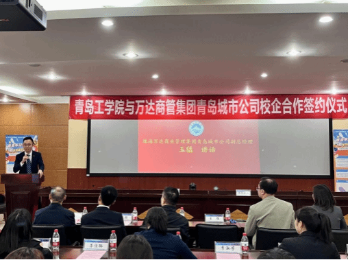 10月23日下午,我校與珠海萬達(dá)商業(yè)管理集團(tuán)青島城市公司校企合作簽約儀式暨2025屆畢業(yè)生實(shí)習(xí)就業(yè)宣講會(huì)在4218報(bào)告廳成功舉辦。珠海萬達(dá)商業(yè)管理集團(tuán)青島城市公司副總經(jīng)理王猛,人事行政經(jīng)理張文強(qiáng)、劉彤彤,青島CBD萬達(dá)廣場(chǎng)、萊西萬達(dá)廣場(chǎng)以及書院萬達(dá)廣場(chǎng)人事行政經(jīng)理,青島工學(xué)院投資方總裁李偉,招生就業(yè)處處長姜昌雷,經(jīng)濟(jì)管理學(xué)院院長宋輝、副院長姜中杰、黨總支副書記朱江濤及部分師生參加簽約儀式及宣講活動(dòng),簽約儀式由經(jīng)濟(jì)管理學(xué)院工商管理專業(yè)負(fù)責(zé)人劉鑫教授主持。