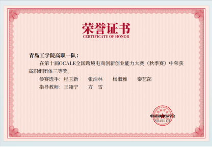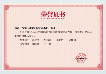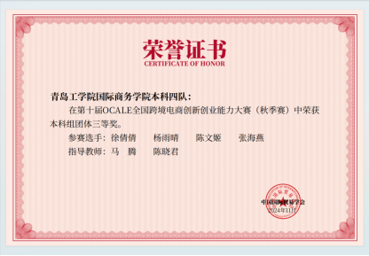 近日,第十屆OCALE全國跨境電商創(chuàng)新創(chuàng)業(yè)能力大賽(秋季賽)圓滿落幕,經(jīng)濟(jì)管理學(xué)院共派出9組同學(xué)(本科賽道6組,高職賽道3組)在陳曉君、方雪、王翊寧和馬騰老師的指導(dǎo)下,經(jīng)過激烈競爭,榮獲二等獎(jiǎng)1項(xiàng)、三等獎(jiǎng)5項(xiàng)。
