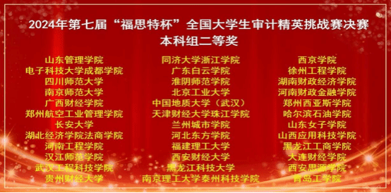 在2024年11月30日結(jié)束的第七屆“福思特杯”全國(guó)大學(xué)生審計(jì)精英挑戰(zhàn)賽中,由我校經(jīng)濟(jì)管理學(xué)院苗清老師指導(dǎo),孫佳怡、徐合清和蘇暢3名學(xué)生組成的團(tuán)隊(duì)獲得本科組二等獎(jiǎng)。