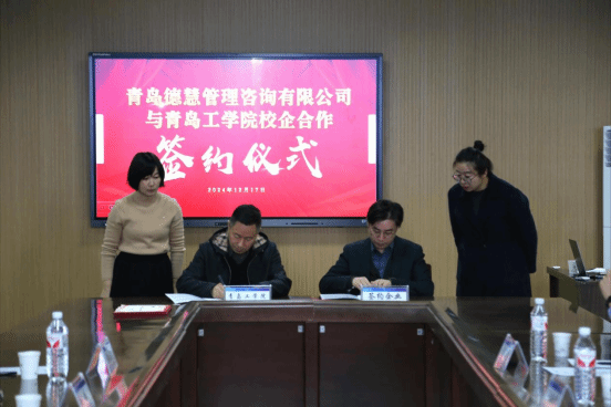 2024 年 12 月 17 日,青島工學(xué)院與青島德慧管理咨詢有限公司校企合作簽約儀式在學(xué)校第一會議室舉行。我校投資方總裁李偉、招生就業(yè)處處長姜昌雷、經(jīng)濟管理學(xué)院院長宋輝等領(lǐng)導(dǎo),青島德慧管理咨詢有限公司 CMO 王曉彤、COO 閆溫霞、HRBP 李志偉等企業(yè)領(lǐng)導(dǎo)出席了簽約儀式,儀式由商務(wù)管理教研室主任丁生主持。