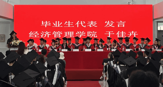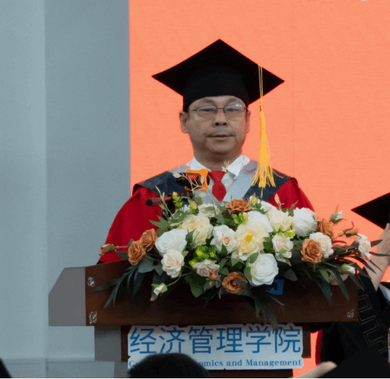 經(jīng)濟(jì)管理學(xué)院院長(zhǎng)宋輝教授致辭,他代表兩個(gè)學(xué)院全體師生向2025屆畢業(yè)生順利完成學(xué)業(yè)表示祝賀,向辛勤育人的老師和默默付出的家長(zhǎng)致以最崇高的敬意和最真摯的感謝。他寄語畢業(yè)生:“山海有路,以誠毅鑄魂前行”“時(shí)代召喚,以創(chuàng)新開拓新局”“家國同心,以擔(dān)當(dāng)共赴未來”,他以“經(jīng)世致用,勇立潮頭”勉勵(lì)畢業(yè)生,強(qiáng)調(diào)在人生奮斗中堅(jiān)守專業(yè)精神與道德底線,將所學(xué)知識(shí)轉(zhuǎn)化為服務(wù)社會(huì)的力量,在未來的經(jīng)濟(jì)浪潮與時(shí)代變革中開拓進(jìn)取、勇于擔(dān)當(dāng),以實(shí)際行動(dòng)為國家富強(qiáng)、民族復(fù)興貢獻(xiàn)青春力量!