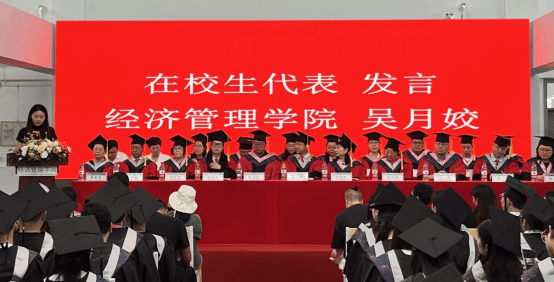 優(yōu)秀畢業(yè)生代表、經(jīng)濟(jì)管理學(xué)院于佳卉同學(xué)深情回望求學(xué)歲月,感恩母校培育,誓言將帶著“青工人”的烙印,以所學(xué)知識(shí)服務(wù)社會(huì)。優(yōu)秀在校生代表吳月姣則表達(dá)了對(duì)學(xué)長(zhǎng)學(xué)姐的誠摯祝福與接力奮進(jìn)的決心。
