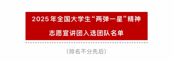 此次兩支團隊的入選,是對學校長期以來堅持立德樹人根本任務、重視思想政治引領與愛國主義教育成效的充分肯定。學校將全力支持宣講團工作,為其提供必要的指導和資源保障,確保宣講活動高質量開展。期望兩支團隊珍惜榮譽,以高度的責任感、飽滿的熱情和嚴謹的態(tài)度,精心打磨宣講內容,創(chuàng)新宣講形式,深入學校、社區(qū)、企業(yè)等基層一線,講清講透“兩彈一星”精神的深刻內涵與永恒價值,引導廣大青少年堅定理想信念,矢志科技報國,為強國建設、民族復興偉業(yè)貢獻青春智慧與力量。