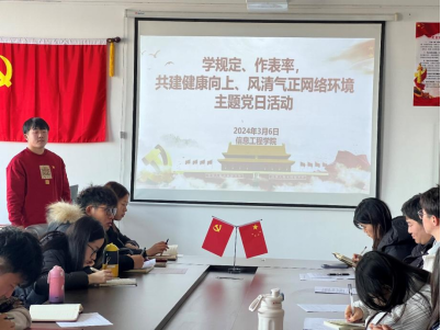 為深入學(xué)習(xí)貫徹習(xí)近平總書記關(guān)于網(wǎng)絡(luò)強(qiáng)國(guó)的重要思想,進(jìn)一步規(guī)范黨員干部網(wǎng)絡(luò)行為,提升網(wǎng)絡(luò)文明素養(yǎng),積極營(yíng)造健康向上、風(fēng)清氣正的網(wǎng)絡(luò)環(huán)境。3月6日,信息工程學(xué)院開展“學(xué)規(guī)定、作表率,共建健康向上、風(fēng)清氣正網(wǎng)絡(luò)環(huán)境”主題黨日活動(dòng)。