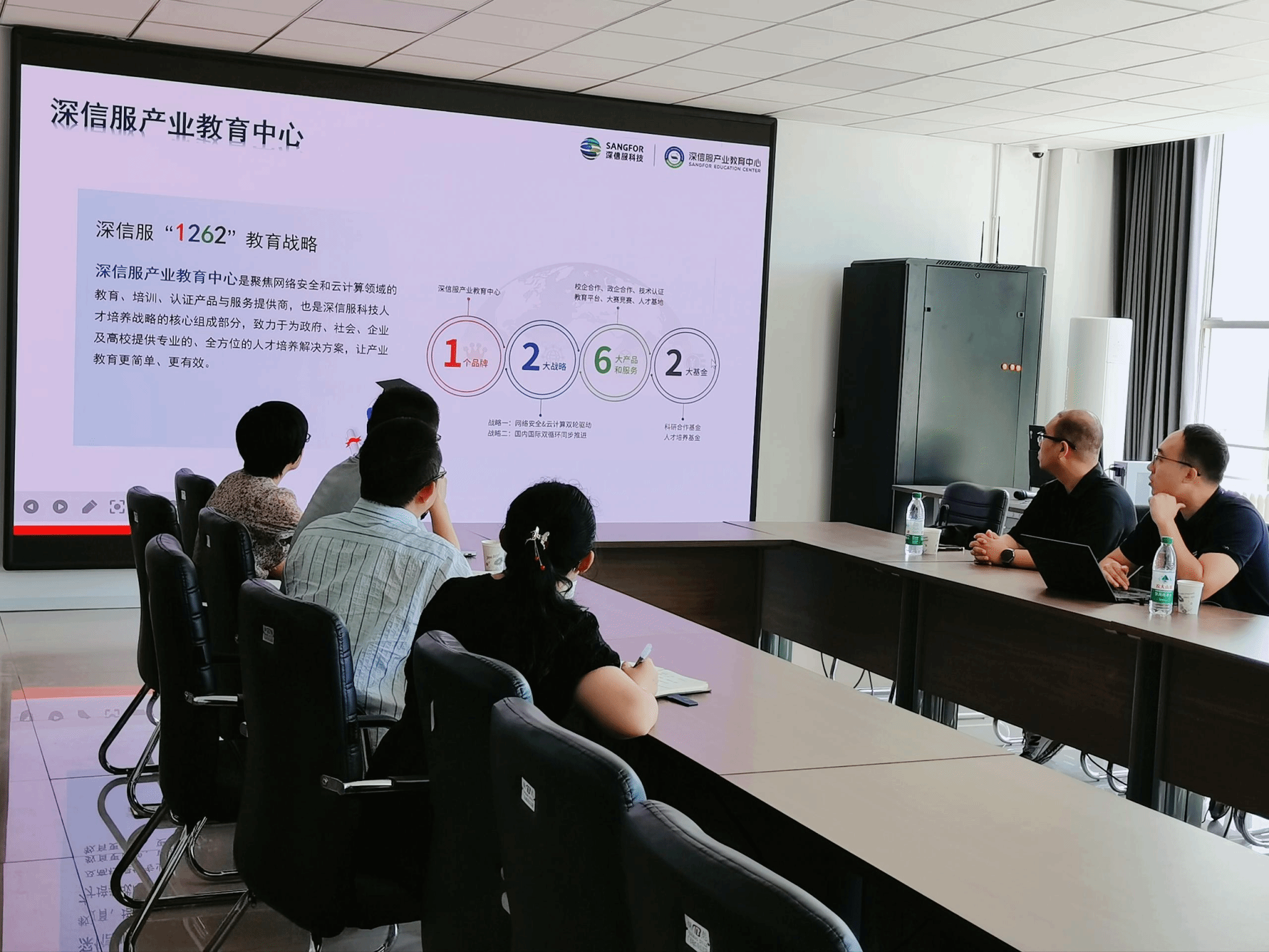 隨后,企業(yè)代表詳細(xì)介紹了公司產(chǎn)業(yè)教育中心的基本情況、業(yè)務(wù)范圍等情況,雙方圍繞網(wǎng)絡(luò)安全人才培養(yǎng)、學(xué)科競(jìng)賽、課程建設(shè)、就業(yè)服務(wù)等議題進(jìn)行了深入且熱烈地交流討論。