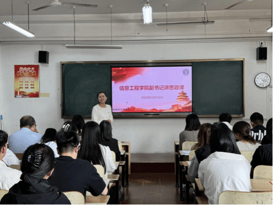 為進一步貫徹落實立德樹人根本任務,提升思政課教學質量和育人實效,2024年10月16日,信息工程學院黨總支副書記李白玉同志以“立德樹人,筑夢青春”為主題于3302開展書記講思政課。