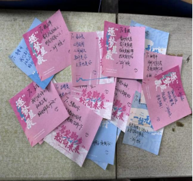 圖書館前,幾位備考的同學(xué)拿著老師手寫的藍(lán)色祝福卡片,粉藍(lán)色便利貼上寫滿了師生對(duì)考研學(xué)子的祝福,老師們鼓勵(lì)的話語如同寒夜里的明燈,照亮考研學(xué)子們前行的道路,讓他們?cè)凇把小蓖局懈惺艿搅藖碜詫W(xué)院的關(guān)愛與溫暖,增強(qiáng)了他們戰(zhàn)勝困難,取得優(yōu)異成績的信心與勇氣。其中一位考研學(xué)子表示:“還有不到一個(gè)月的時(shí)間就要迎來25考研,學(xué)院送來的祝福讓我知道我并不是一人孤軍奮戰(zhàn),在我的身后是整個(gè)學(xué)院。我們考研學(xué)子一定會(huì)堅(jiān)持到底,全力以赴,不辜負(fù)學(xué)院的期望?!?/p>