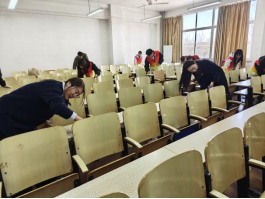 與此同時(shí),教室維護(hù)組的成員們則深入到第三教學(xué)樓的每一個(gè)角落,對(duì)150余間教室進(jìn)行了深度清潔。他們不僅清理了課桌上的垃圾和涂鴉,還擦洗了墻面和黑板,讓整個(gè)教室煥然一新。在這個(gè)過(guò)程中,我校領(lǐng)導(dǎo)始終與志愿者們并肩作戰(zhàn),他們的身影成為了校園里一道亮麗的風(fēng)景線。