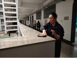學(xué)生骨干以學(xué)院黨員教師為標(biāo)桿,在責(zé)任片區(qū)實施“1+N”引領(lǐng)模式,每名黨員教師帶領(lǐng)5名學(xué)生組成攻堅小組。手把手指導(dǎo)學(xué)生用除膠劑清理涂鴉、污漬,清理課桌內(nèi)殘留的紙屑,擦洗黑板和教學(xué)設(shè)備。教師黨員分片督導(dǎo)時,主動加入學(xué)生勞動隊伍,接過學(xué)生手中的抹布,一邊擦拭窗臺一邊分享校園文化理念:“潔凈的不僅是環(huán)境,更是我們的精神風(fēng)貌。”