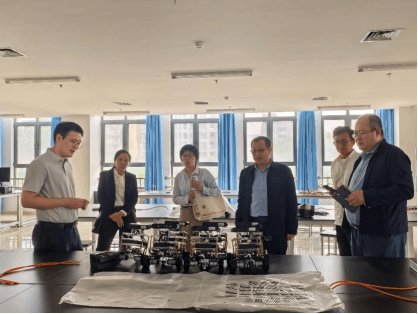 在機器人工程專業(yè)實驗室,山東科技大學機器人研究中心副主任宋詩斌教授就機器人工程專業(yè)實驗室建設(shè)、課程開設(shè)、學生實踐能力培養(yǎng)以及該實驗室在機器人研發(fā)等方面成果內(nèi)容進行了介紹。參觀過程中,雙方教師圍繞機器人技術(shù)的專業(yè)課程體系設(shè)置與實驗室建設(shè)等方面展開深入交流,探討如何將機器人領(lǐng)域的前沿技術(shù)融入新版人才培養(yǎng)方案中,以拓寬學生的專業(yè)視野,提升學生的實踐創(chuàng)新能力。雙方還就實踐教學環(huán)節(jié)安排、學生創(chuàng)新創(chuàng)業(yè)能力培養(yǎng)等專業(yè)建設(shè)核心問題進行了廣泛而深入的探討,分享了各自在教學管理、課程改革、師資隊伍建設(shè)等方面的經(jīng)驗和做法。