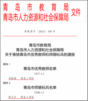 近日,青島市教育局公布青島市師德標(biāo)兵和優(yōu)秀教師名單,我校郭玉芝、劉曉燕兩位老師成功入選。